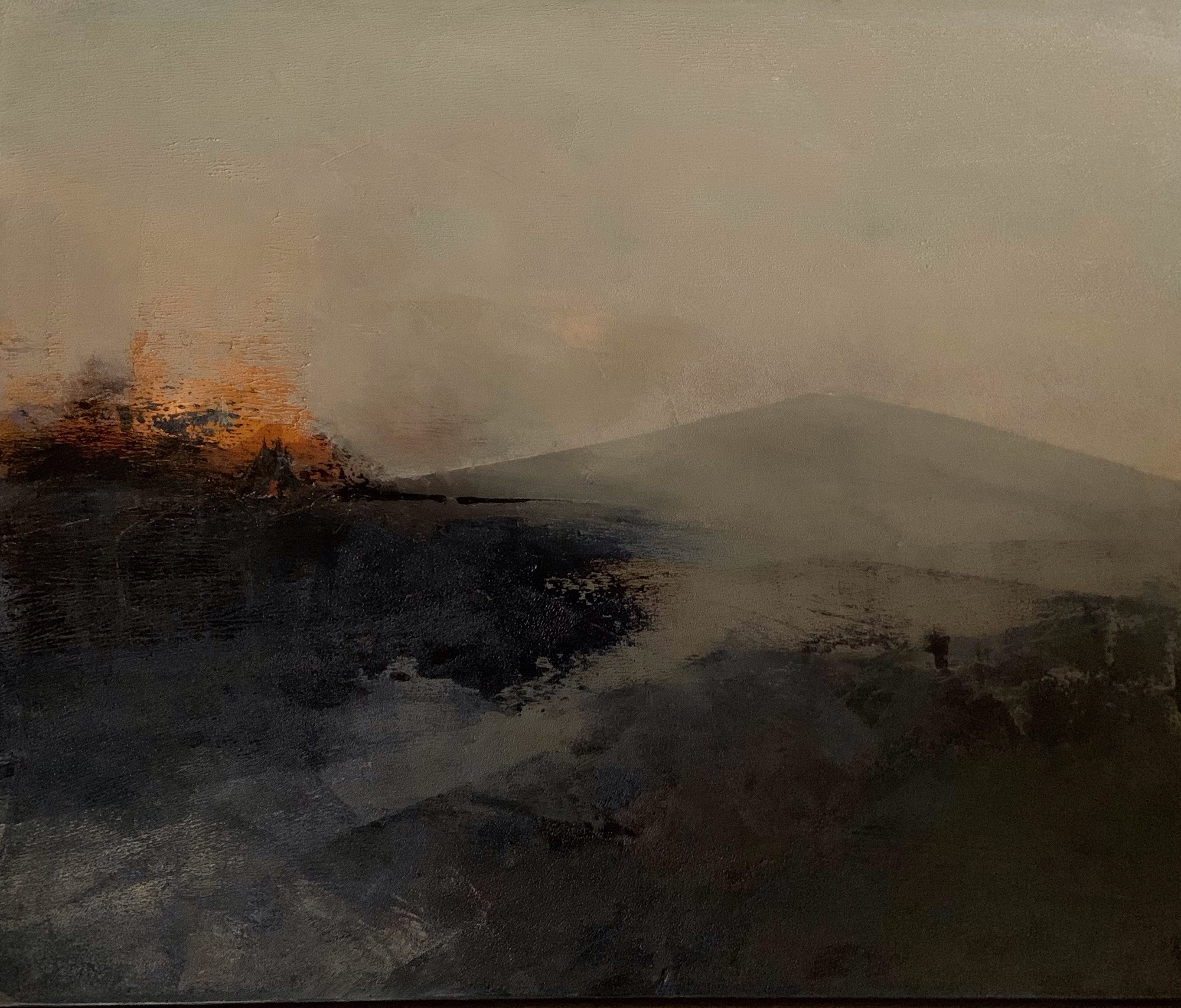 In other pieces I will aim for rich evocative surfaces made by layers of paint to bring a glow and depth to the painting. They can be excavated in parts with scraping tools to reveal the under painting, then finished with glazes of transparent paint. This work can go on a journey over days, weeks or even years as I will often return to a piece to rework it. The process of destruction is part of making something new and creating a painting journey.